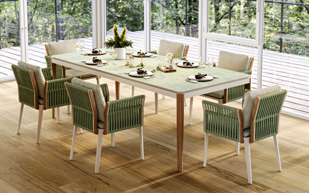 Dining Sets & Lounge Chairs: Durable powder-coated finishes and quick-dry fabrics